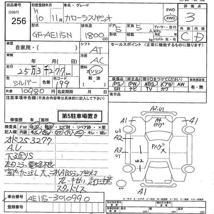 Toyota COROLLA SPACIO с аукциона Японии JU Niigata лот № 256