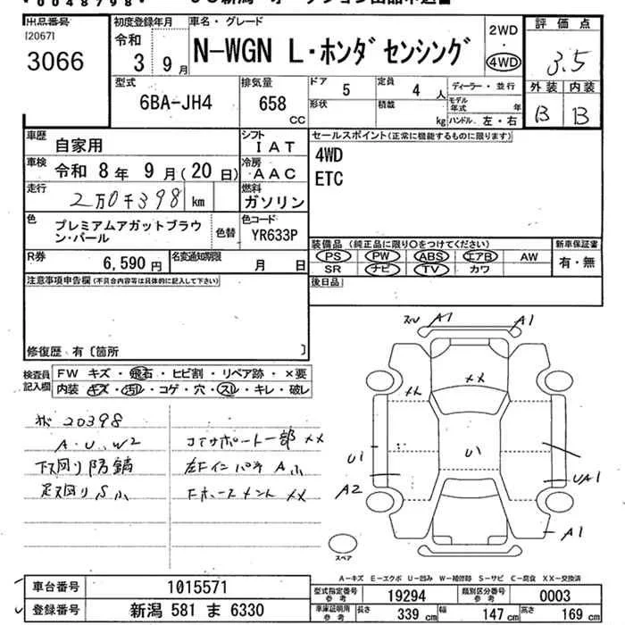 Honda N WGN с аукциона Японии JU Niigata лот № 3066