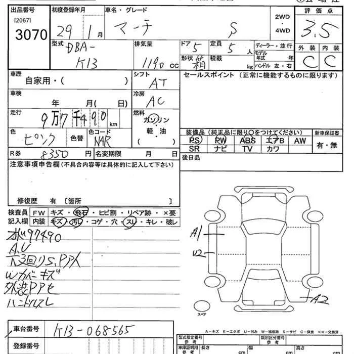 Nissan MARCH с аукциона Японии JU Niigata лот № 3070