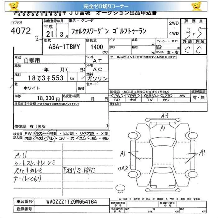 Volkswagen GOLF TOURAN с аукциона Японии JU Miyagi лот № 4072