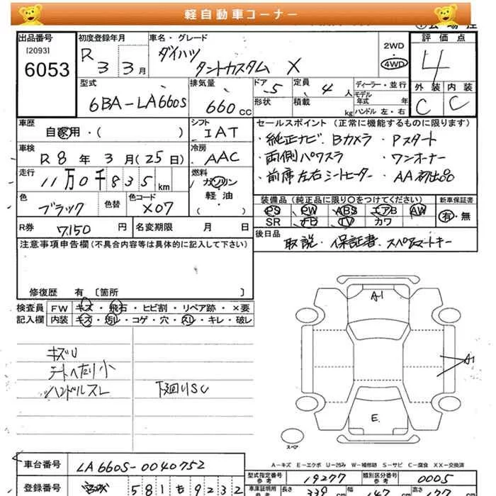 Daihatsu TANTO с аукциона Японии JU Miyagi лот № 6053