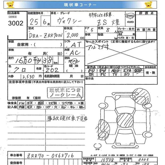 Toyota VOXY с аукциона Японии JU Miyagi лот № 3002