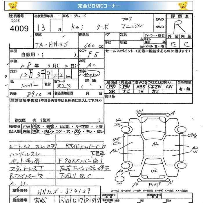 Suzuki KEI с аукциона Японии JU Miyagi лот № 4009