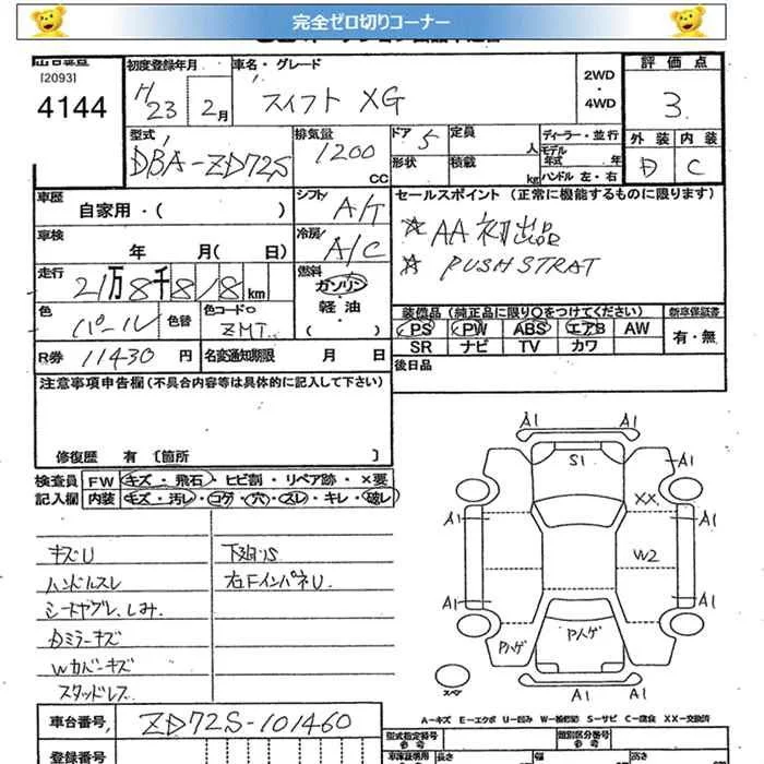 Suzuki SWIFT с аукциона Японии JU Miyagi лот № 4144