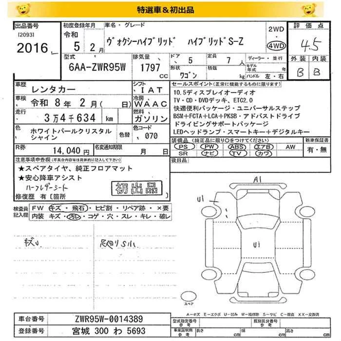 Toyota VOXY с аукциона Японии JU Miyagi лот № 2016