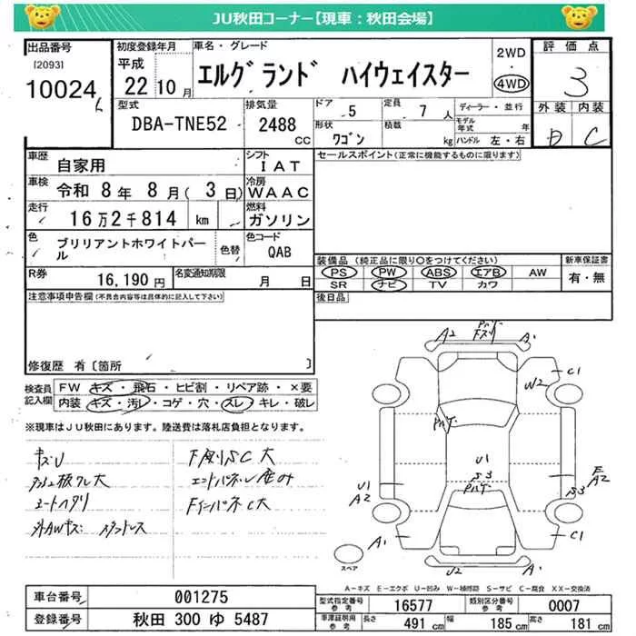 Nissan ELGRAND с аукциона Японии JU Miyagi лот № 10024