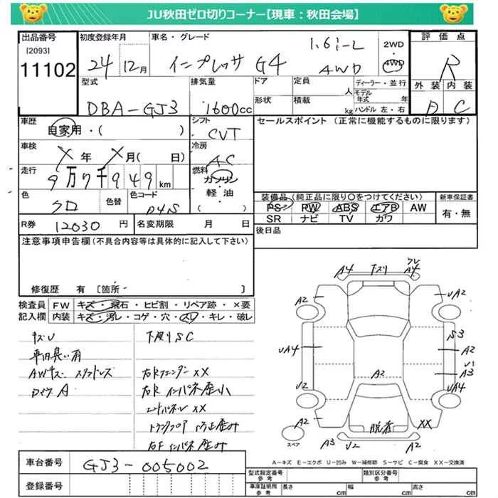 Subaru IMPREZA G4 с аукциона Японии JU Miyagi лот № 11102