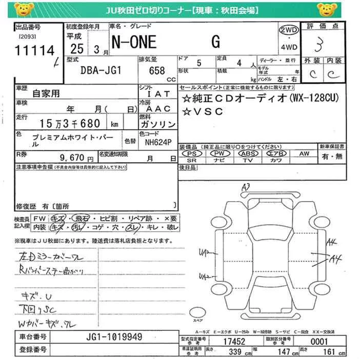 Honda N ONE с аукциона Японии JU Miyagi лот № 11114