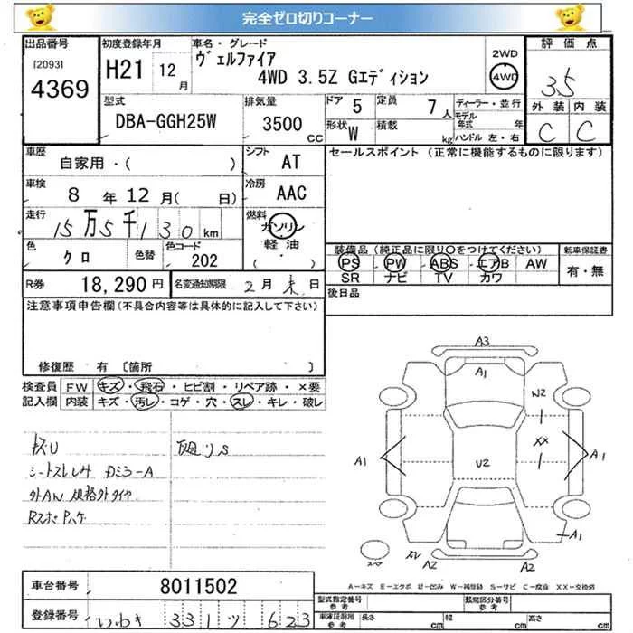 Toyota VELLFIRE с аукциона Японии JU Miyagi лот № 4369