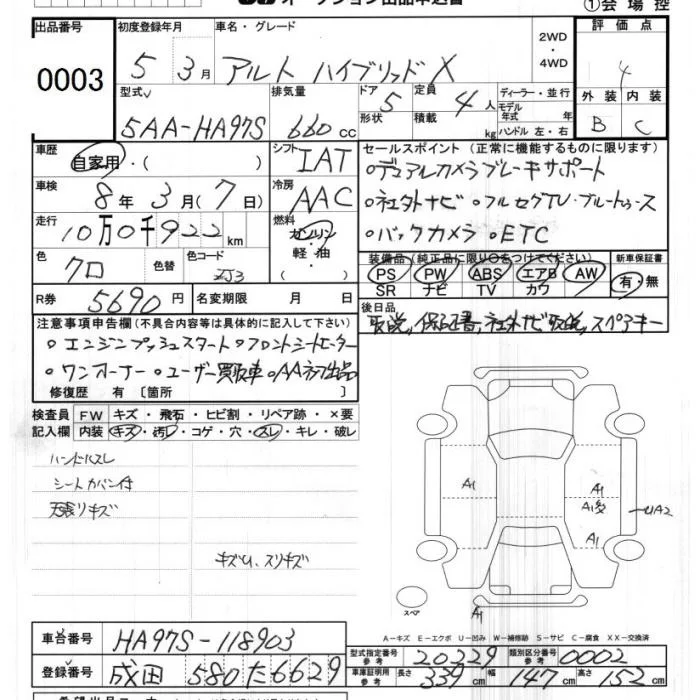 Suzuki ALTO с аукциона Японии JU Chiba лот № 3