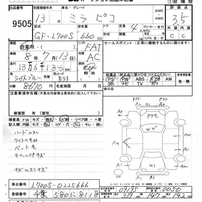 Daihatsu MIRA с аукциона Японии JU Chiba лот № 9505