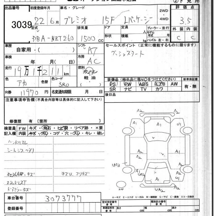 Toyota PREMIO с аукциона Японии JU Chiba лот № 3039