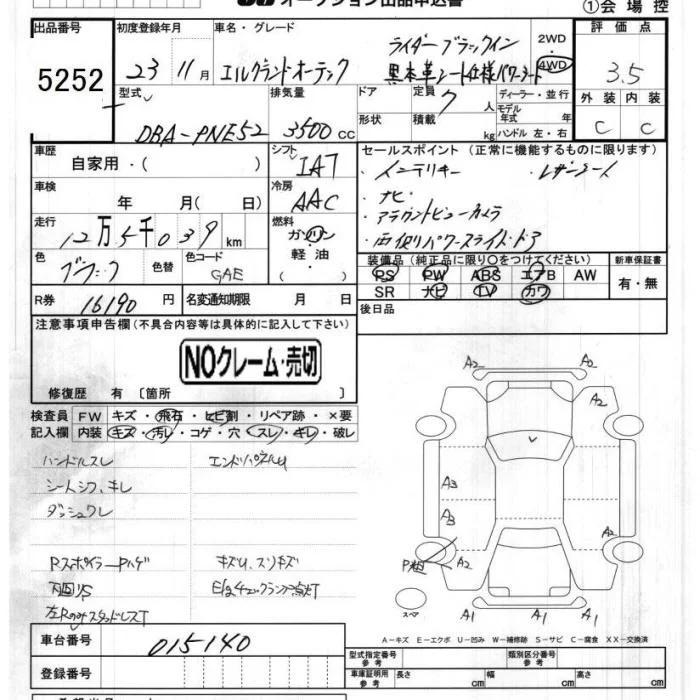 Nissan ELGRAND с аукциона Японии JU Chiba лот № 5252