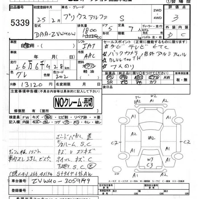 Toyota PRIUS ALPHA с аукциона Японии JU Chiba лот № 5339