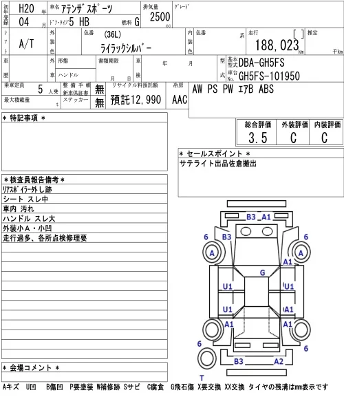 Mazda ATENZA SPORT с аукциона Японии NAA Tokyo лот № 6712