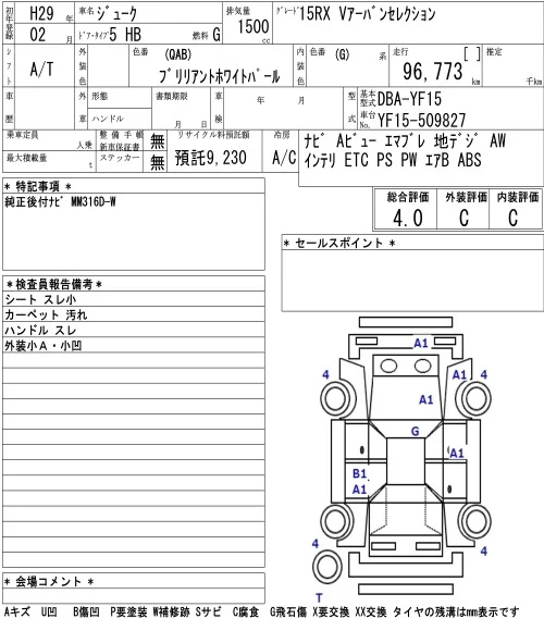 Nissan JUKE с аукциона Японии NAA Tokyo лот № 45