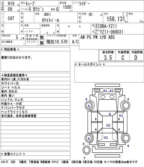 Nissan CUBE с аукциона Японии NAA Tokyo лот № 8552