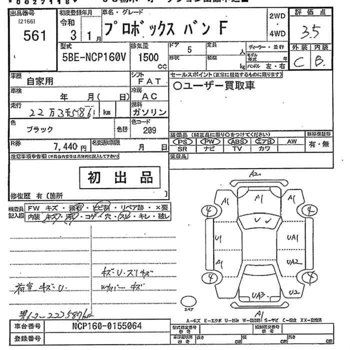 Toyota PROBOX с аукциона Японии JU Tochigi лот № 561