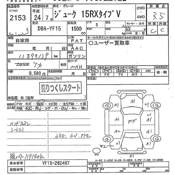 Nissan JUKE с аукциона Японии JU Tochigi лот № 2153