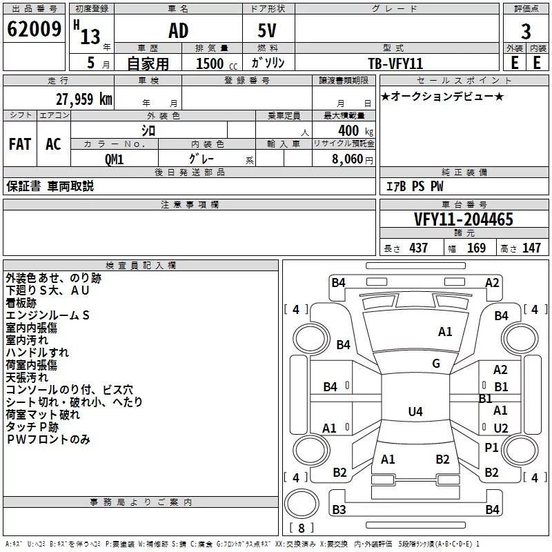 Nissan AD с аукциона Японии TAA Yokohama лот № 62009
