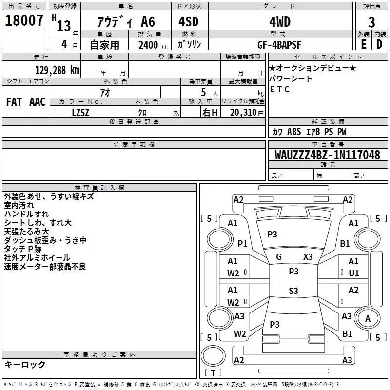 Audi A6 с аукциона Японии TAA Yokohama лот № 18007