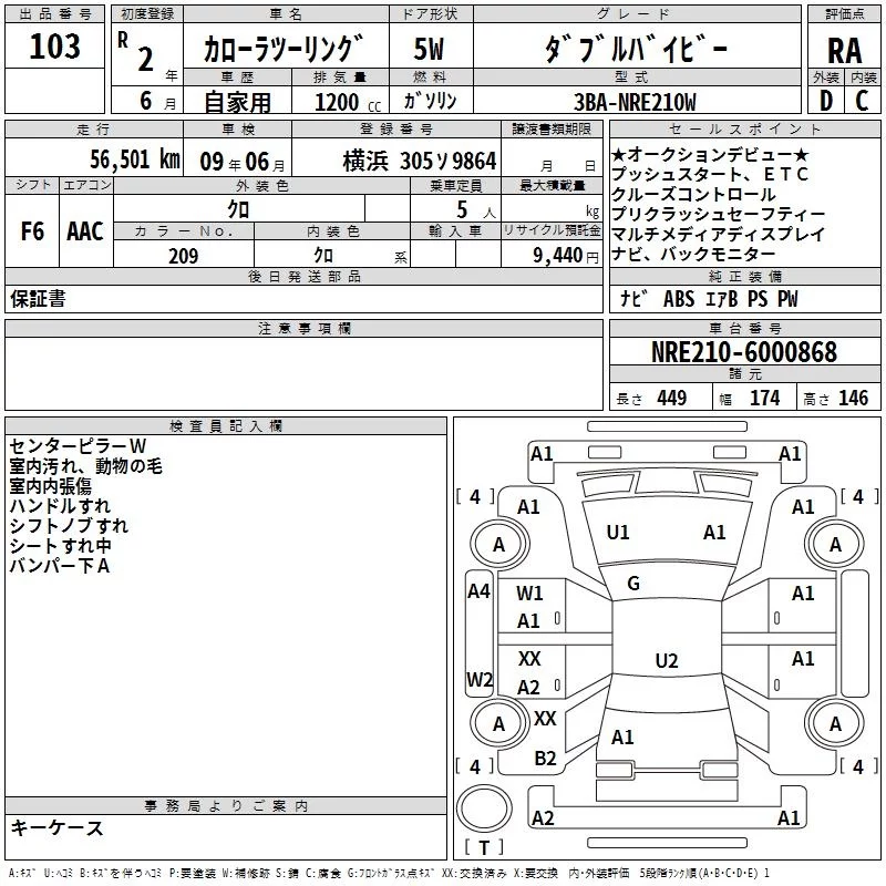 Toyota COROLLA TOURING с аукциона Японии TAA Yokohama лот № 103