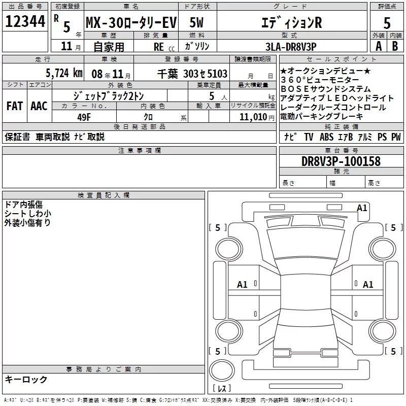 Mazda MX-30 с аукциона Японии TAA Yokohama лот № 12344