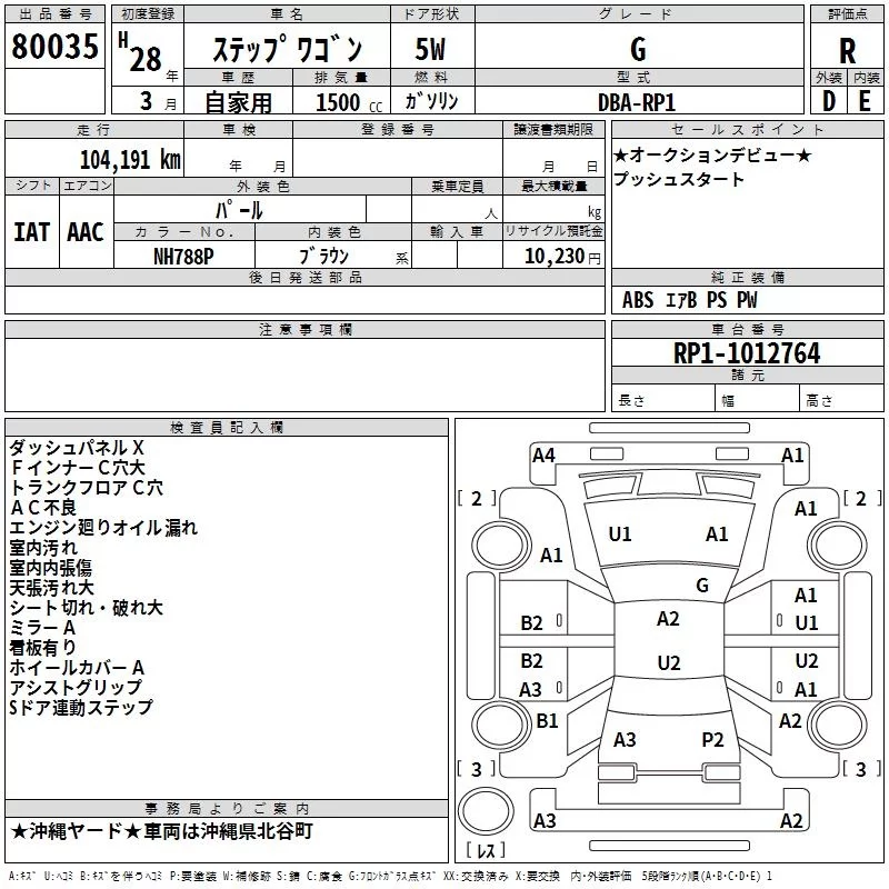Honda STEP WAGON с аукциона Японии TAA Yokohama лот № 80035