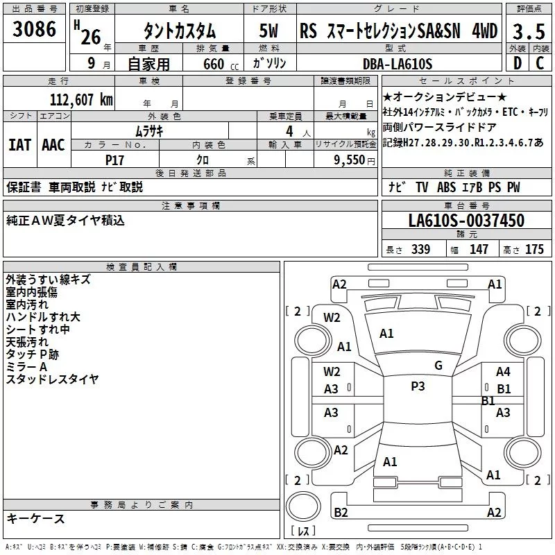 Daihatsu TANTO с аукциона Японии TAA Yokohama лот № 3086