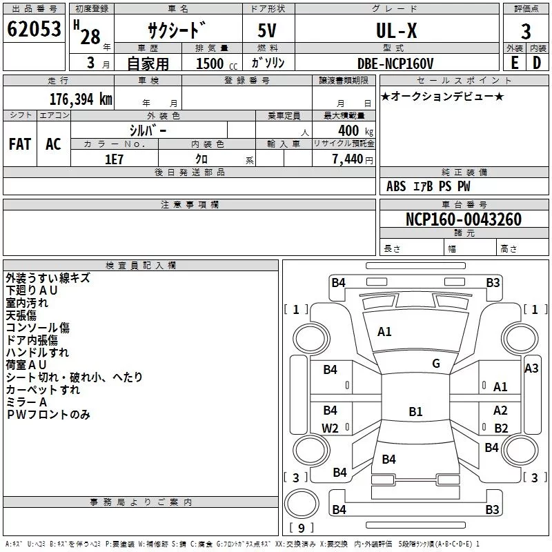 Toyota SUCCEED с аукциона Японии TAA Yokohama лот № 62053