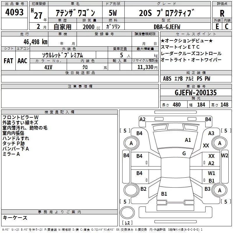 Mazda ATENZA WAGON с аукциона Японии TAA Yokohama лот № 4093