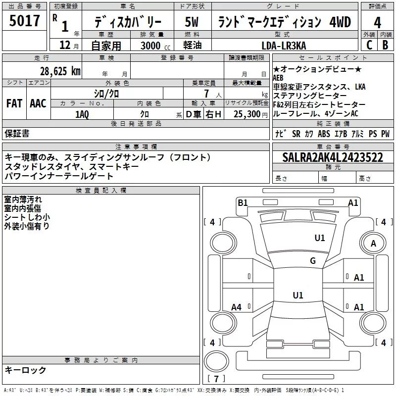 Rover DISCOVERY с аукциона Японии TAA Yokohama лот № 5017