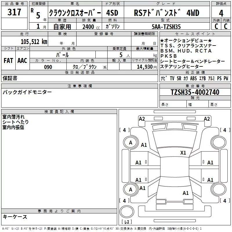 Toyota CROWN CROSSOVER с аукциона Японии TAA Yokohama лот № 317