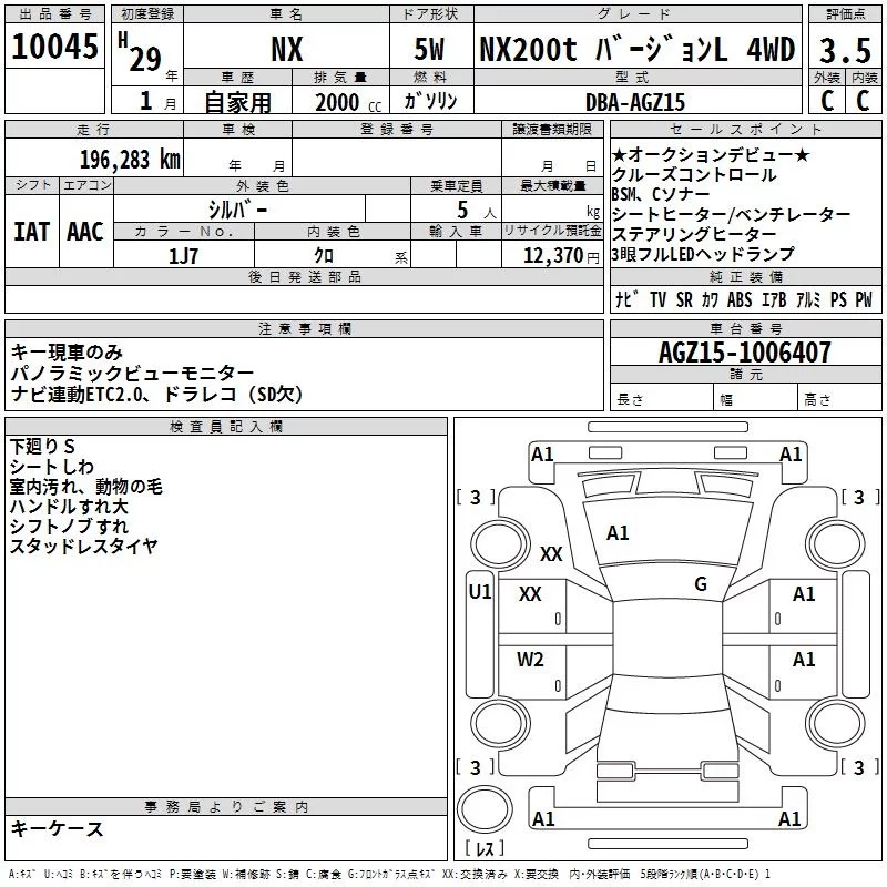 Lexus NX с аукциона Японии TAA Yokohama лот № 10045