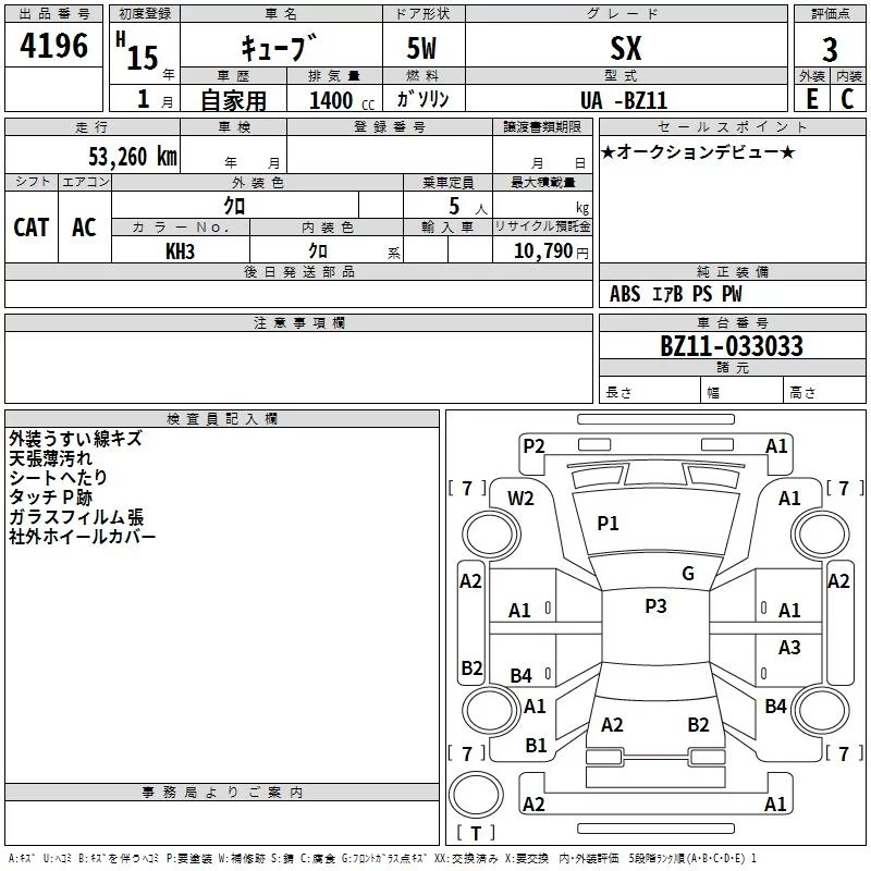 Nissan CUBE с аукциона Японии TAA Yokohama лот № 4196