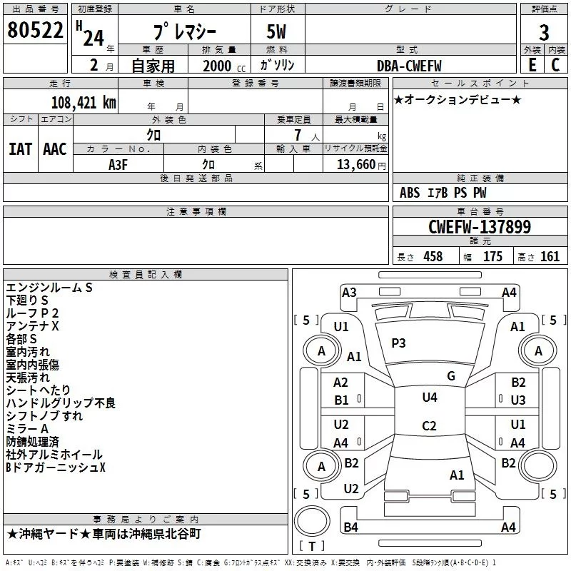 Mazda PREMACY с аукциона Японии TAA Yokohama лот № 80522