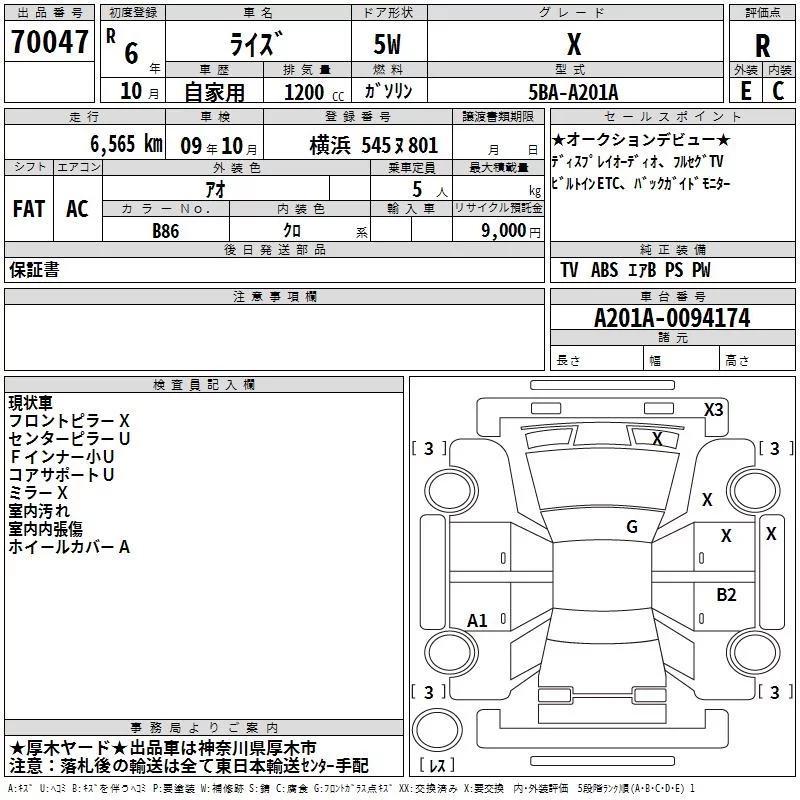 Toyota RAIZE с аукциона Японии TAA Yokohama лот № 70047