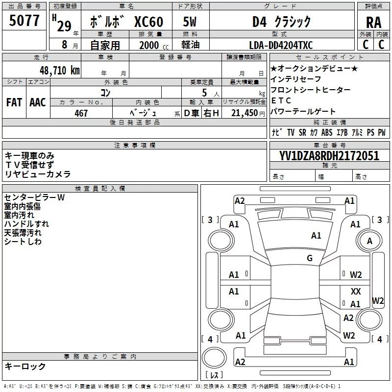 Volvo XC60 с аукциона Японии TAA Yokohama лот № 5077