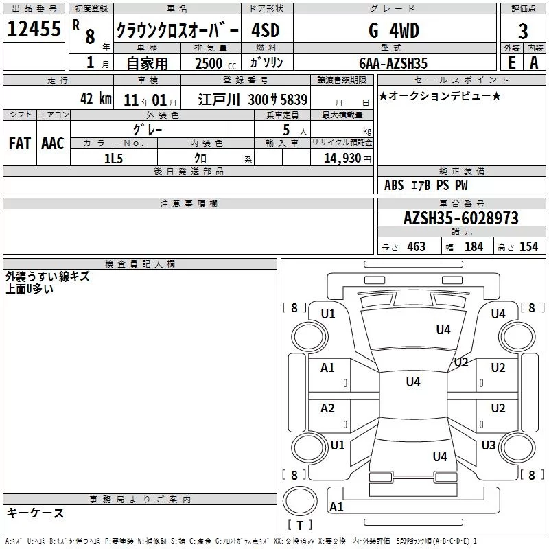 Toyota CROWN CROSSOVER с аукциона Японии TAA Yokohama лот № 12455