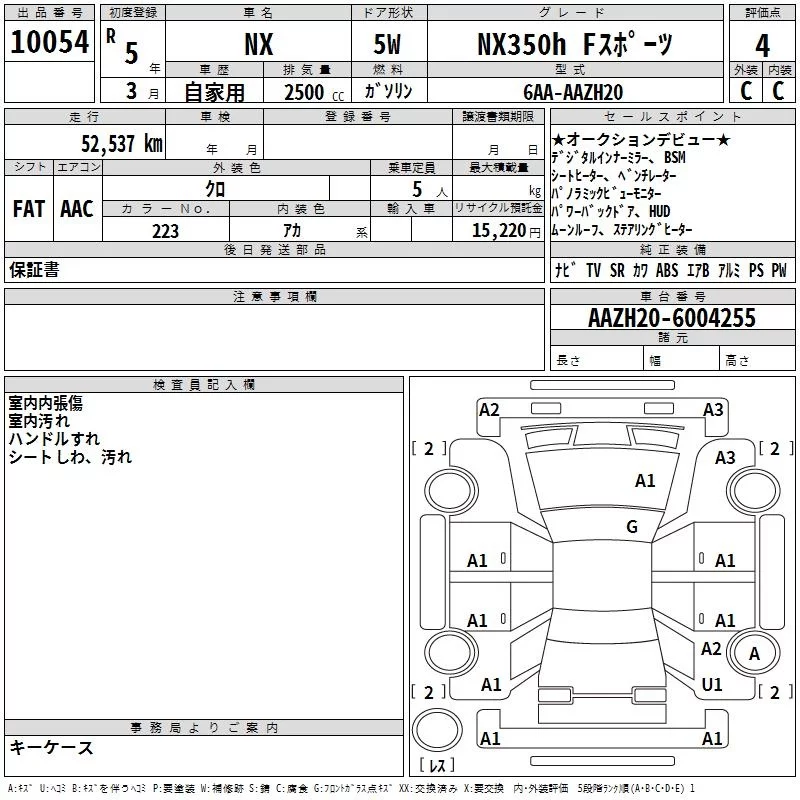 Lexus NX с аукциона Японии TAA Yokohama лот № 10054