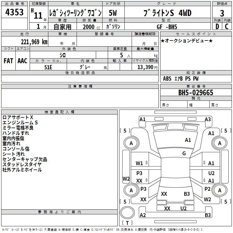 Subaru LEGACY с аукциона Японии TAA Yokohama лот № 4353