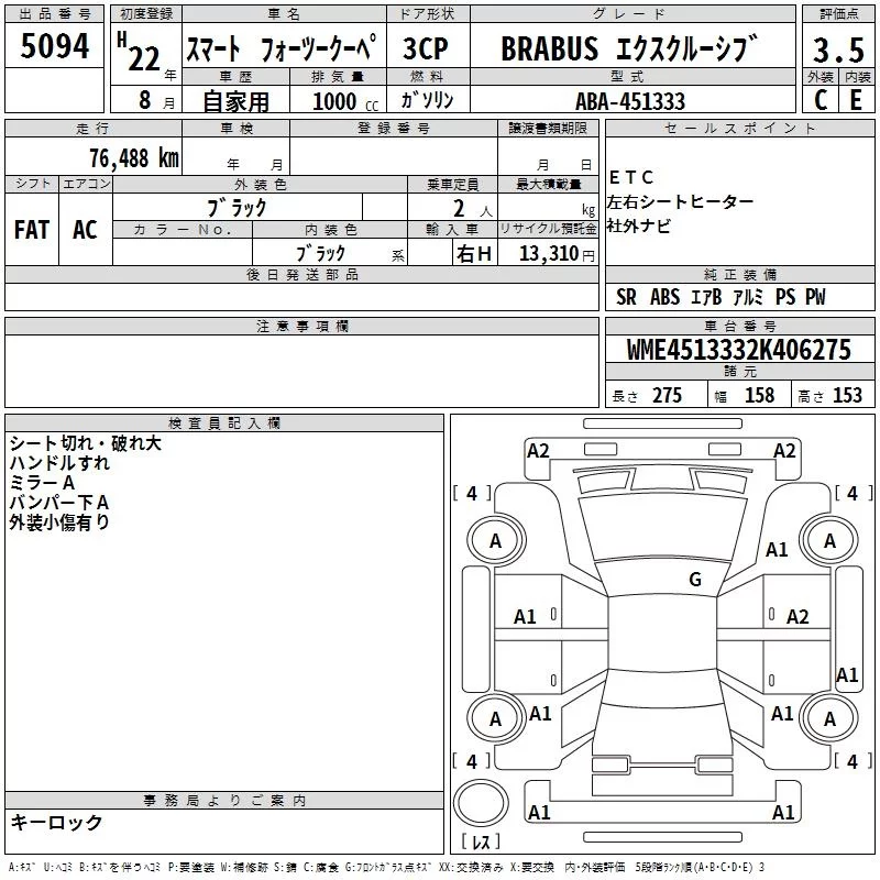 Smart FORTWO с аукциона Японии TAA Yokohama лот № 5094
