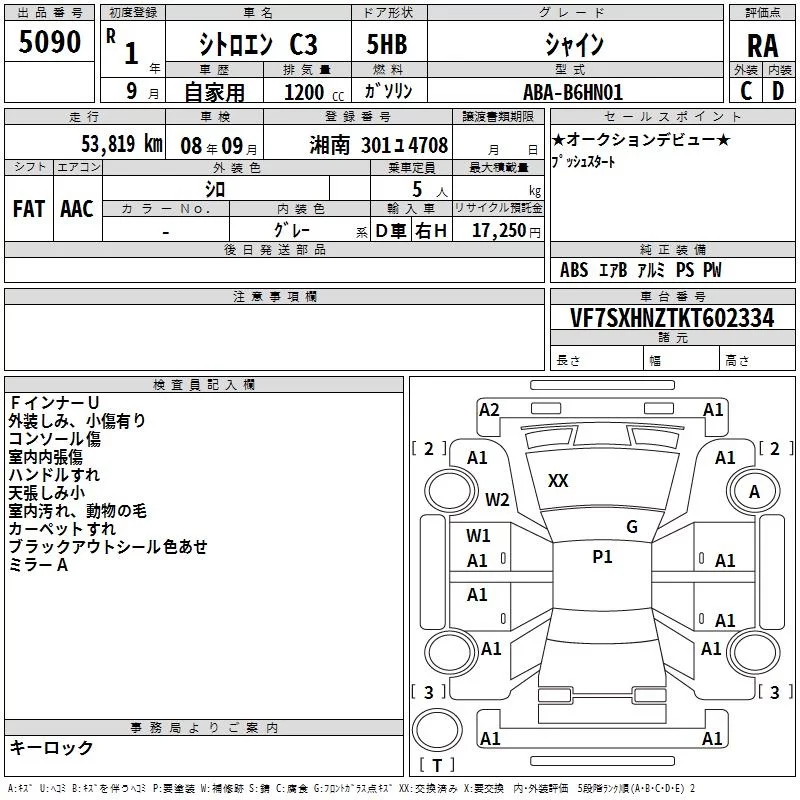 Citroen C3 с аукциона Японии TAA Yokohama лот № 5090