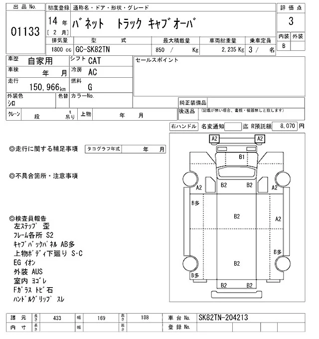Nissan VANETTE TRUCK с аукциона Японии ARAI Oyama VT лот № 1133