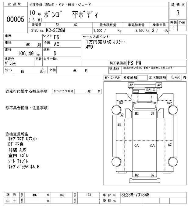 Mazda BONGO с аукциона Японии ARAI Oyama VT лот № 5