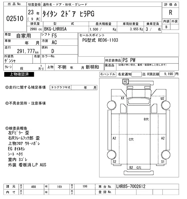 Mazda TITAN с аукциона Японии ARAI Oyama VT лот № 2510