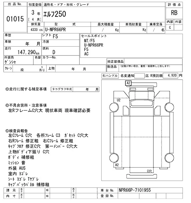 Isuzu ELF TRUCK с аукциона Японии ARAI Oyama VT лот № 1015