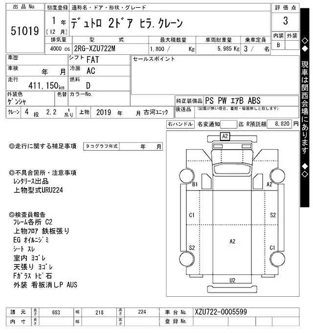 Hino DUTRO с аукциона Японии ARAI Oyama VT лот № 51019