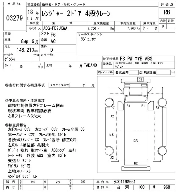Hino RANGER с аукциона Японии ARAI Oyama VT лот № 3279