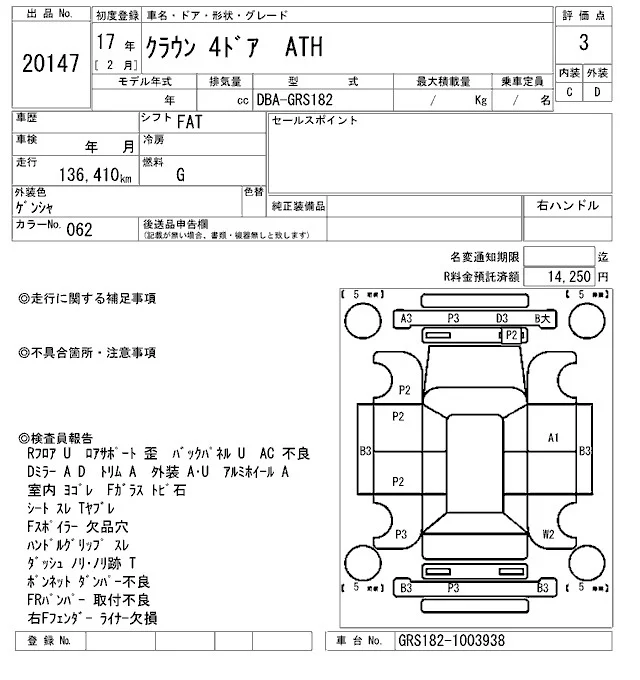 Toyota CROWN с аукциона Японии ARAI Oyama VT лот № 20147